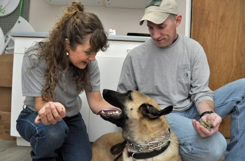 O cachorro da raça pastor-belga malinois deve se recuperar totalmente da cirurgia de duas horas. O procedimento para retirada das munições foi realizado pela veterinária Sarah Sexton.