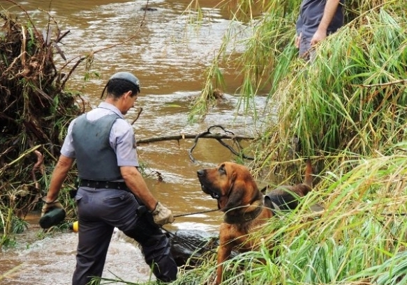 O cão farejador “Atila”, do canil da Polícia Militar de Assis está ajudando nas buscas, que aconteceram desde a manhã desta sexta-feira nas margens do córrego “Água da Veada”, onde a mulher foi vista pela última vez.