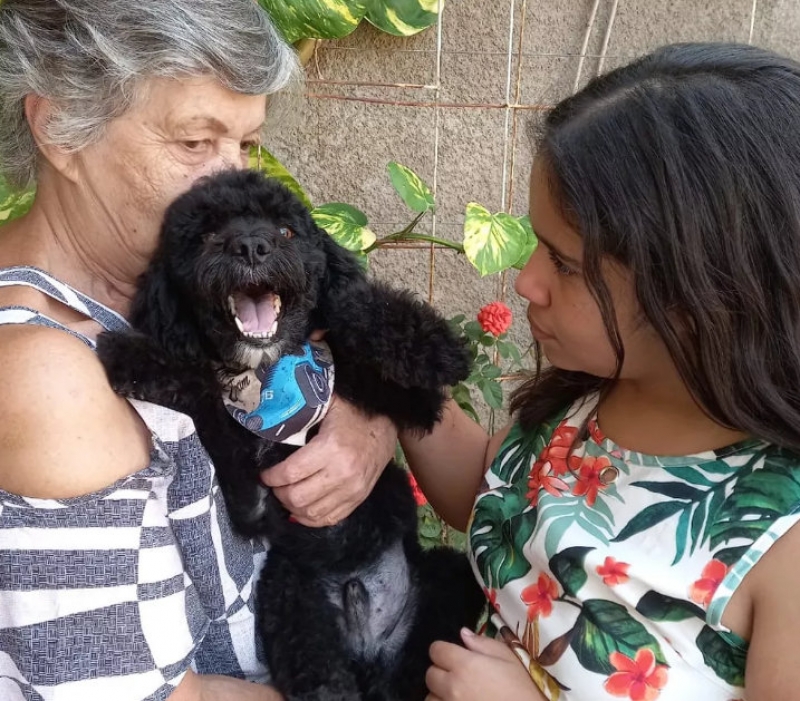 “Colocamos o nome nele de Black, por conta da cor do pelo. Estou muito feliz, mas o cachorro mais ainda. Ele e a minha neta estão se dando super bem. Foi amor à primeira vista. Não consigo nem explicar.”