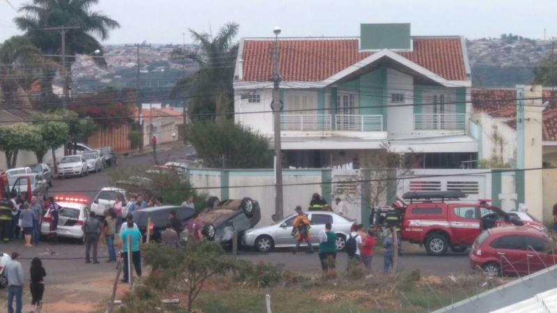 Um jovem ficou ferido após capotar seu veículo em um cruzamento no Jardim Acapulco, zona oeste de Marília, próximo às Universidades.