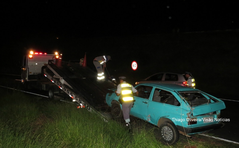 Um capotamento foi registrado na noite deste sábado (25) na Rodovia do Contorno (SP-294) próximo à Cooperativa, em Marília, ferindo duas pessoas.