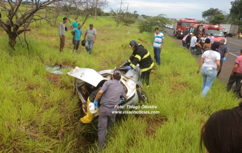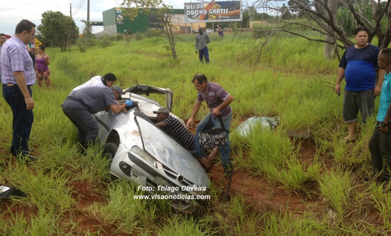 O acidente mobilizou equipes de salvamento do Corpo de Bombeiros e também SAMU. O motorista sofreu ferimentos leves, mas um dos ocupantes ficou preso nas ferragens e o outro projetado para fora do carro.