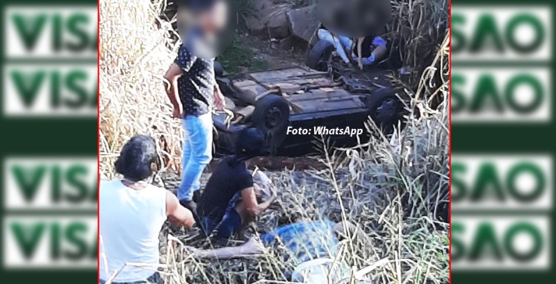 Veículo era ocupado por cinco pessoas e acabou caindo numa ribanceira.