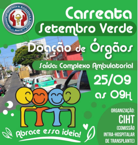 Fazendo parte das atividades do Setembro Verde, a Ciht (Comissão Intra-Hospitalar de Transplantes) da Santa Casa de Misericórdia de Marília promove carreata para conscientizar a população sobre a importância da doação de órgãos, neste dia 25 de setembro (sábado), a partir das 9h.