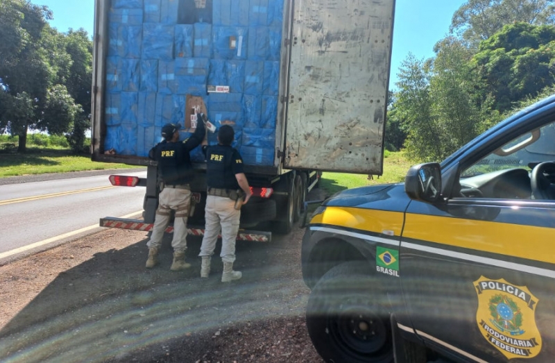 A Polícia Rodoviária Federal apreendeu no final da manhã desta segunda-feira uma carreta transportando grande quantidade de cigarros contrabandeados do Paraguai. O motorista conseguiu fugir, mas está sendo procurado pelas equipes da PRF.
