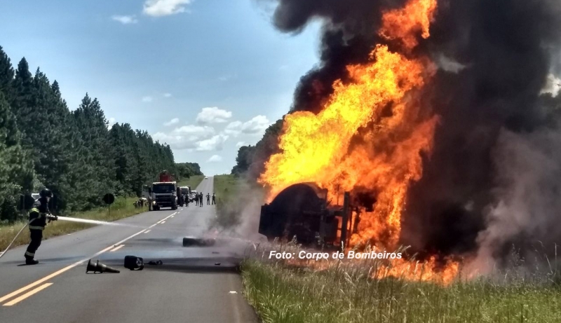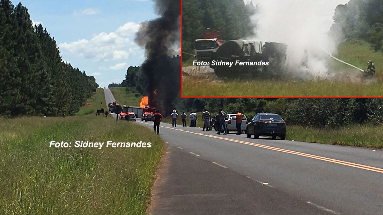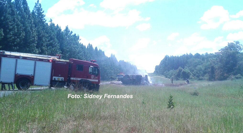 No meio do caminho, numa reta, o motorista disse que perdeu o controle. Como não existe acostamento e há um declive, a carreta acabou tombando e em seguida pegou fogo.