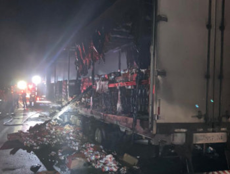 Uma carreta carregada com leite pegou fogo na madrugada desta segunda-feira (24), na Rodovia Castello Branco (SP-280), próximo da divisa entre os município de Santa Cruz do Rio Pardo e Águas de Santa Barbara.