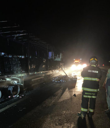 De acordo com informações do Corpo de Bombeiros, o motorista informou que as chamas começaram na cabine após uma pane elétrica. Em seguida, o fogo se espalhou por toda a carreta, que ficou destruída. Ninguém se feriu.