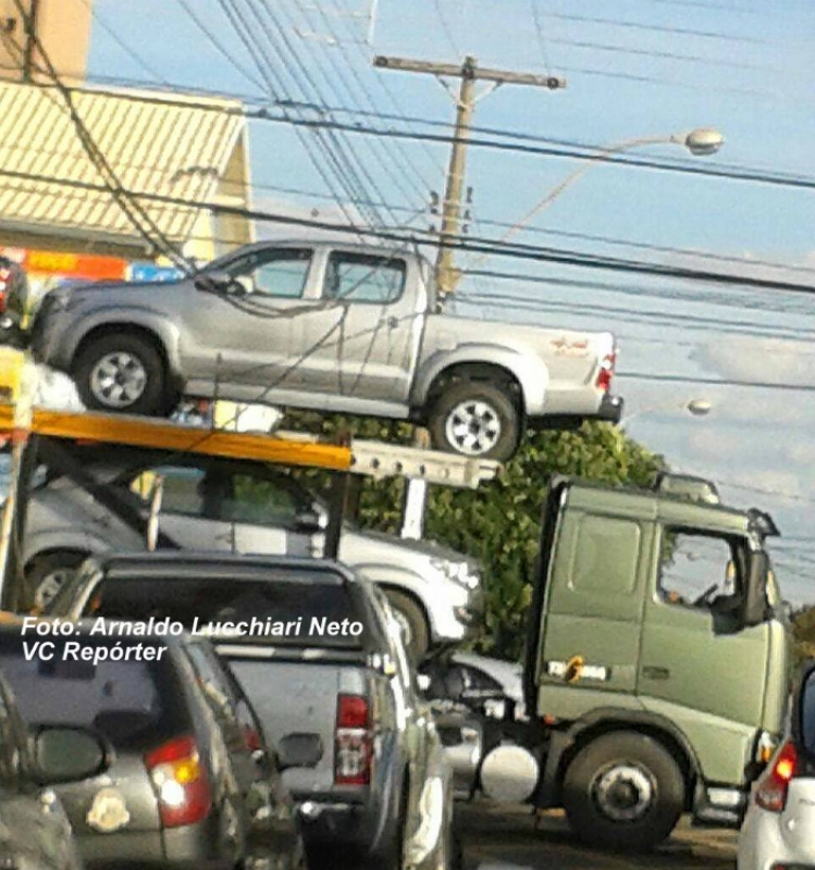Uma carreta tipo "cegonha", carregada com caminhonetes 0 KM ficou literalmente enroscada nos fios de telefonia e demais cabos (inclusive bem próximo aos de alta tensão), na avenida Rio Branco, próximo ao centro da cidade. O trânsito ficou interditado até que todos os veículos que estavam na parte de cima fossem retirados.
