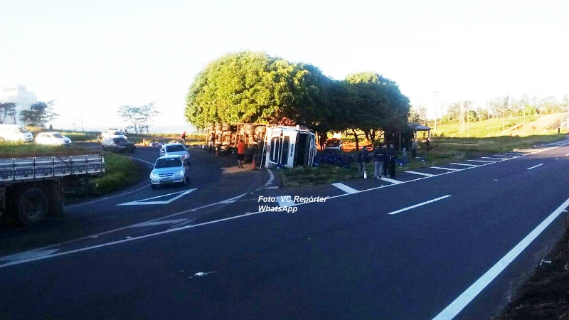 A carga ficou espalhada pelo acostamento e pessoas que passavam pelo local tentaram levar os engradados de cerveja. Mas, foram contidas assim que chegaram as viaturas da Polícia Rodoviária. O veículo permanece no local, mas o trânsito não está prejudicado porque a carreta também ficou tombada além da pista.