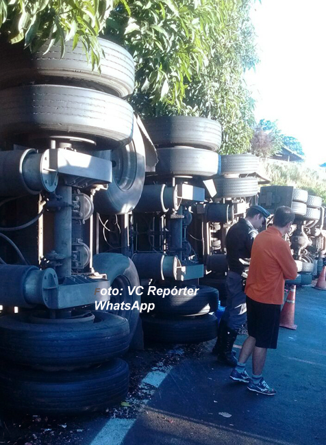 A carreta, com placas de Santa Catarina, trafegava no sentido interior - capital, ou seja sentido base da Polícia Rodoviária - Campus Universitário. Pouco antes da alça, existe sinalização inclusive com radar (indicando velocidade máxima de 40 km/h). Mesmo assim, o condutor ao descer a alça perdeu o controle e tombou.