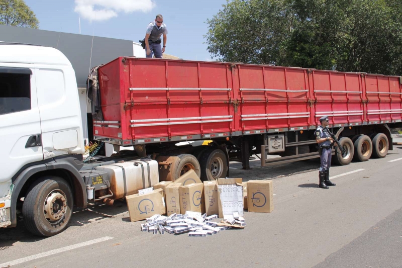 Uma carreta com uma grande carga de cigarros contrabandeados do Paraguai foi apreendida, na manhã desta sexta-feira (17), na altura do quilômetro 271 da rodovia Marechal Rondon (SP-300), em Guarantã.