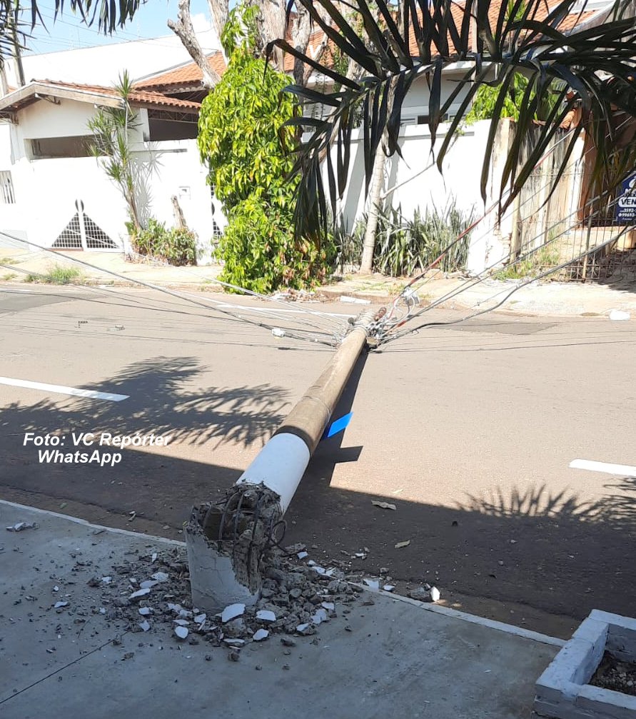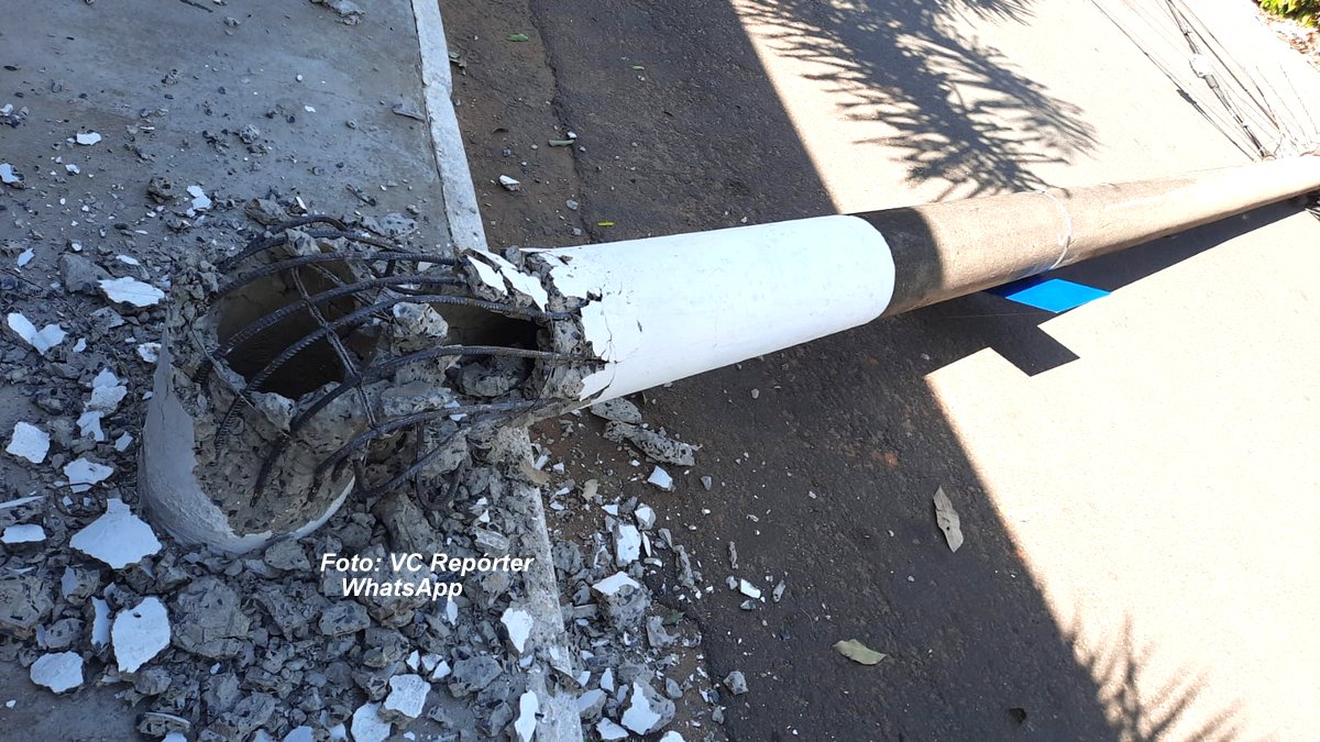 O impacto foi tão forte com a fiação elétrica que o poste de concreto literalmente foi arrancado, indo parar no meio da via pública. Outro também teria ficado abalado.