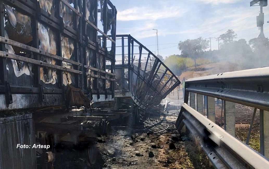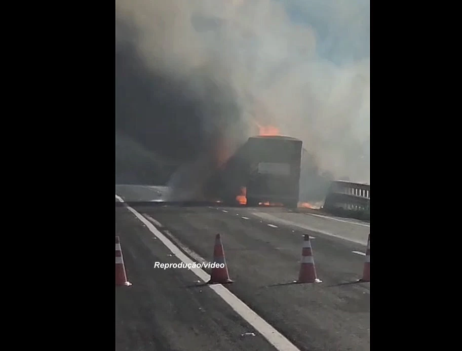 Ele imediatamente parou no acostamento e, apesar dos esforços, não conseguiu conter as chamas que se alastraram para o restante da carreta, causando destruição total.