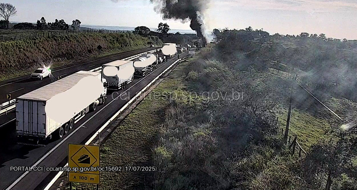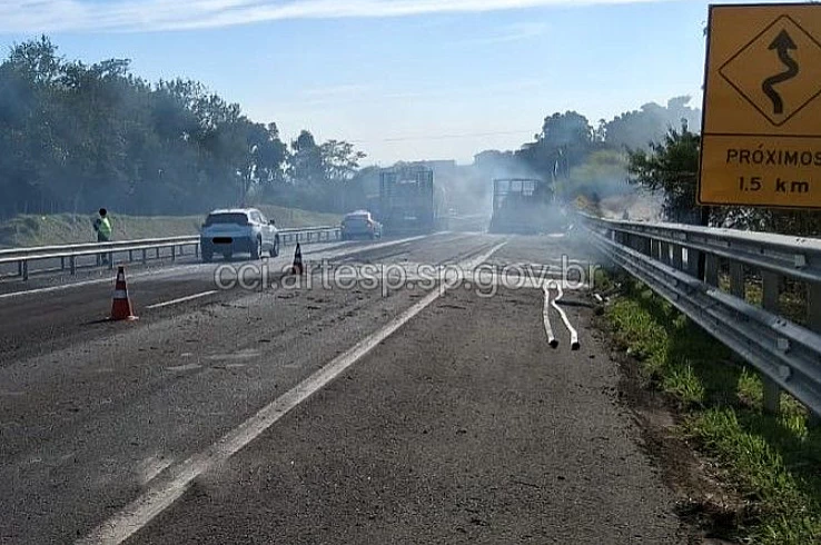 Por causa do incêndio na carreta houve um grande congestionamento de veículos na SP-333.