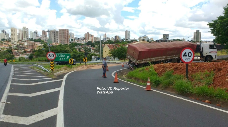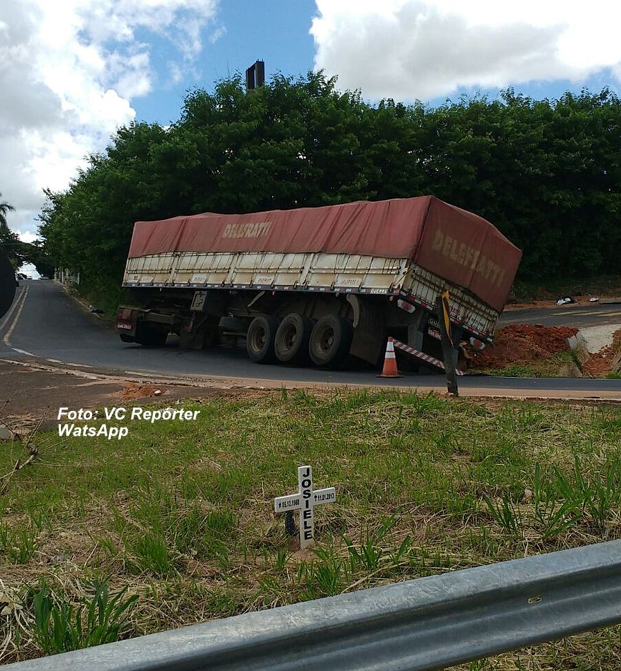Uma carreta literalmente ficou enroscada na alça de acesso ao Hospital das Clínicas, no sentido campus universitário, depois de cair na canaleta de escoamento de água existente no local. O tráfego de veículos está complicado há cerca de duas horas até definir como o veículo será retirado.