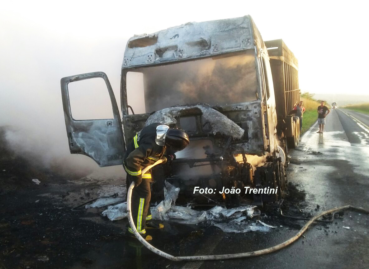 Bastos e Rancharia. Equipes do Corpo de Bombeiros de Tupã e Rancharia foram mobilizadas para combater as chamas. O condutor não sofreu ferimentos, mas o veículo sofreu grandes danos.