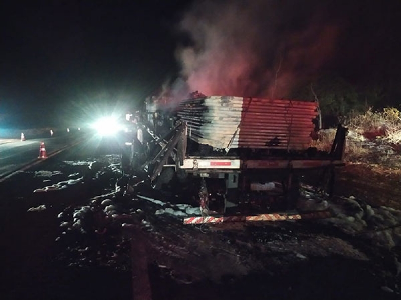 Uma carreta com placas de Santo Antonio da Platina/PR, pegou fogo no km 385 da Rodovia Rachid Rayes entre Assis e Echaporã, na noite desta quarta-feira (04). De acordo com o Corpo de Bombeiros, o motorista seguia sentido Assis/Echaporã, quando notou as chamas e soltou a carga no acostamento da pista.