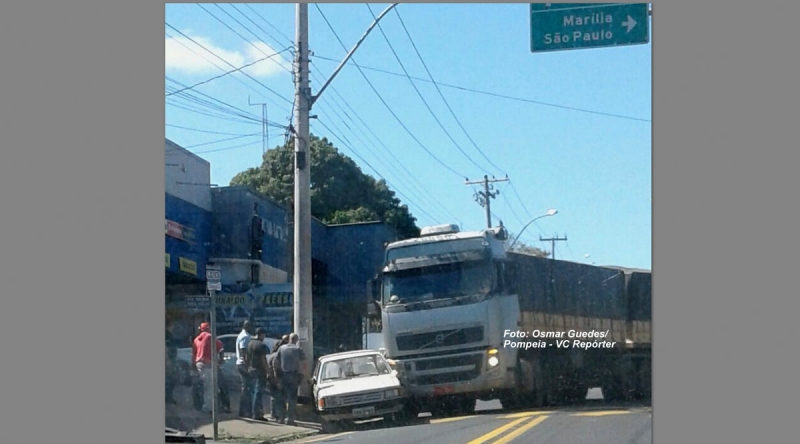 De acordo com a Polícia Militar, a carreta seguia logo atrás de uma outra pela via no sentido Marília - Tupã. No cruzamento com a Rua Constantino Marcolino de Souza (tem preferencial e a visibilidade é reduzida), o primeiro veículo passou. Mas, o outro caminhoneiro não percebeu que a belina estava se aproximando ao cruzamento, ocorrendo o acidente. O condutor da belina sofreu ferimentos causados por estilhaços de vidros e foi socorrido. A colisão ocorreu a poucos metros do pelotão da PM de Pompeia.