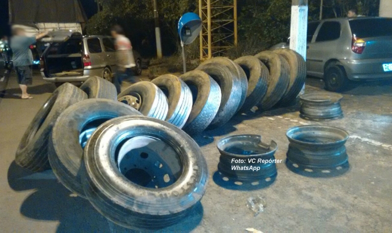 Os pneus estão sendo desmontados para retirada dos tabletes.