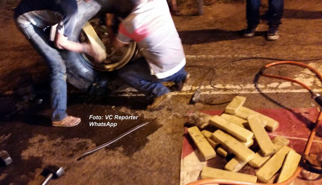 trajeto, passaria por Marília e possivelmente o destino seria grandes centros, como a capital. A droga estava escondida em oito pneus que estavam instalados na carreta, o que dificilmente seria percebido nas fiscalizações. Mas, por precaução, os patrulheiros desmontaram 13 veículos.