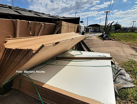 Veículo estava carregado com placas de madeira e carga só deve ser retirada nesta segunda-feira