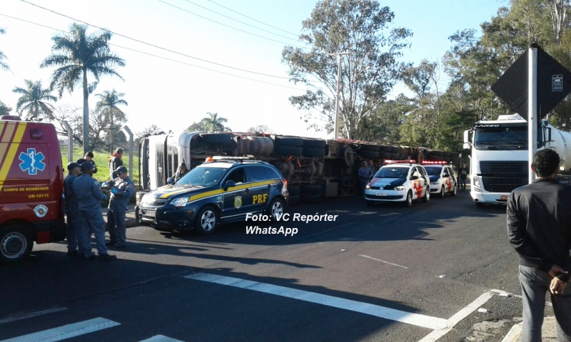 Nesta manhã, uma carreta que seguia da cidade de Braço do Norte (Santa Catarina) para São Luiz (Maranhão), carregada com madeira, tombou no mesmo local. O motorista sofreu ferimentos e teve que ser socorrido pela equipe Resgate do Corpo de Bombeiros ao Hospital das Clínicas. A carga também danificou um poste de iluminação e atingiu o muro da sede da PRF.