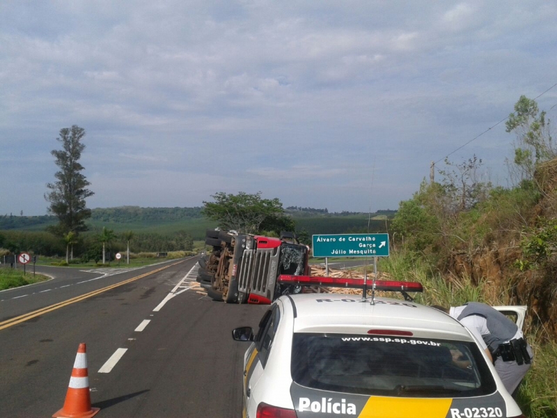 A carreta, placas de Curiuva/PR, trafegava pela vicinal que liga Júlio Mesquita a Álvaro de Carvalho e, no acesso à SP-333, por motivos que ainda estão sendo apurados, o motorista perdeu o controle e o veículo tombou no acostamento já no sentido contrário da rodovia (Ribeirão Preto - Marília), espalhando a carga. Apesar dos estragos, o condutor não sofreu ferimentos.