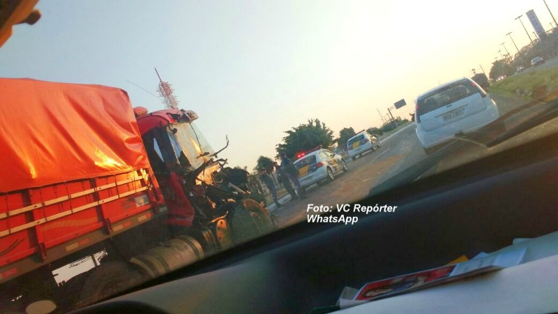 Uma colisão traseira envolvendo duas carretas logo cedo na rodovia do Contorno, em frente a Unimar, causou ferimentos num dos motoristas e comprometeu o trânsito