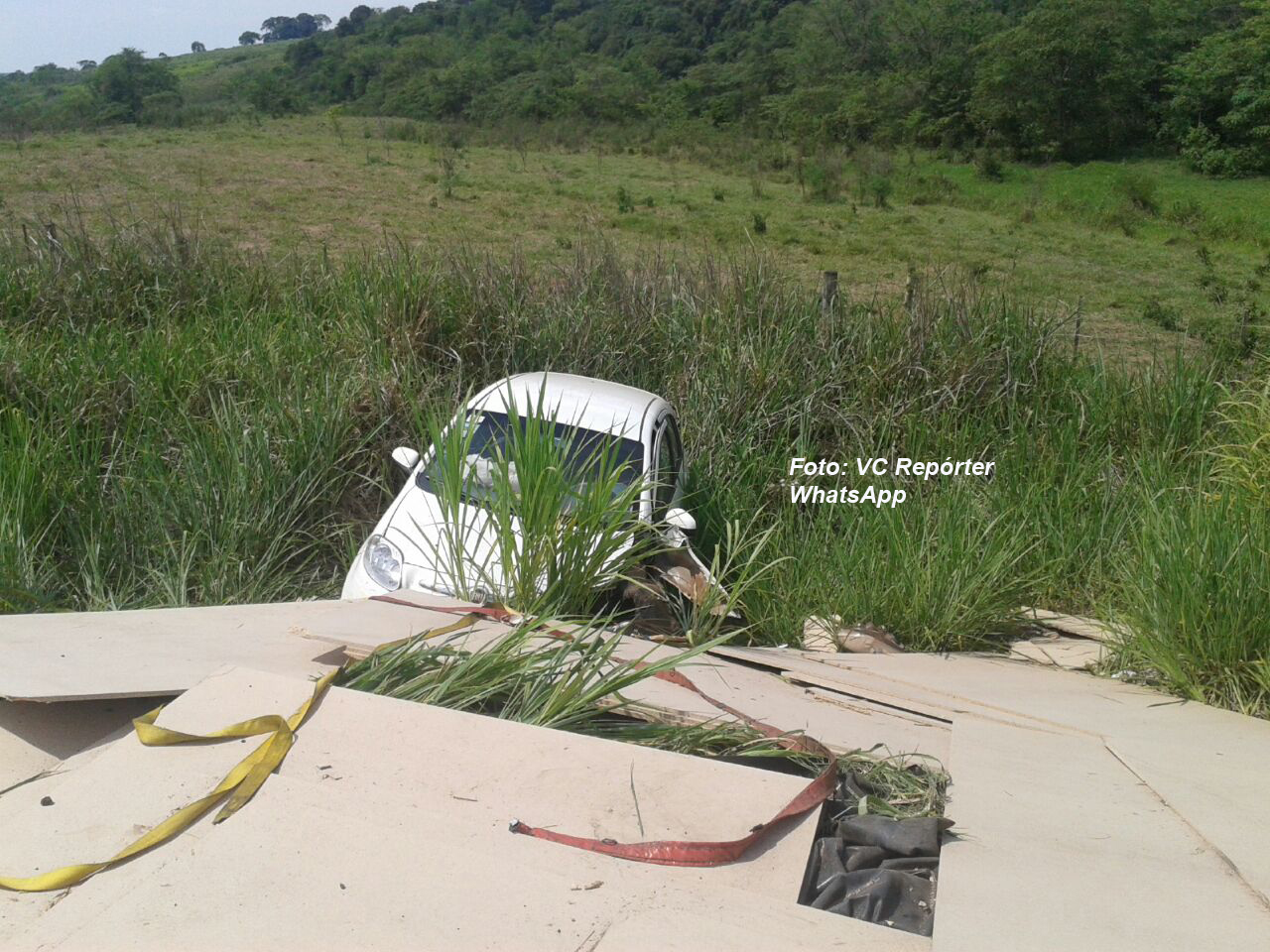 Com o impacto, o carro foi parar numa ribanceira enquanto que a carreta tombou. A carga de madeira (compensados) também se espalhou pela pista e acostamento. Apenas o motorista da carreta sofreu ferimentos leves.