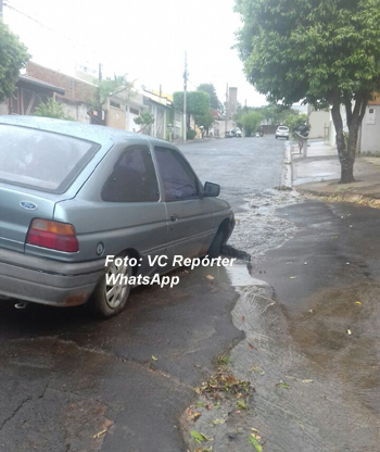 da avenida República e, no começo desta tarde (31), o carro acabou caindo numa cratera próximo ao supermercado Kawakami, também na zona norte. Ele pretende registrar boletim de ocorrência para pedir idenização.