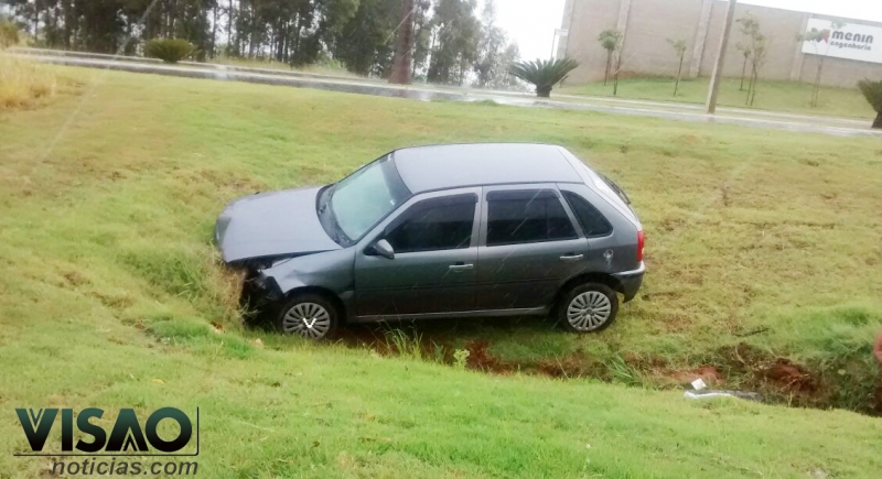 Um Gol cinza com placas de Marília foi parar dentro de uma vala às margens da rodovia SP-294, próximo ao Marília Shopping, no sentido Zona Norte - Zona Oeste, na tarde desta segunda-feira, 15.