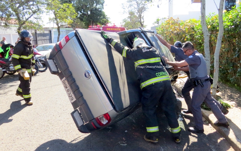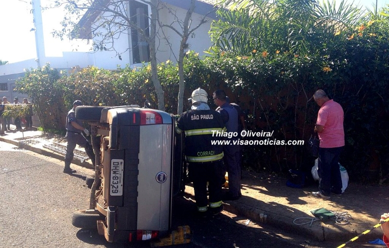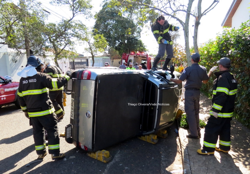 Um grave capotamento foi registrado há pouco no cruzamento das ruas Caiçara com Coronel José Braz, na zona oeste de Marília.