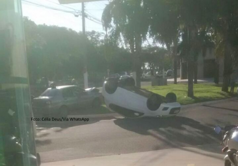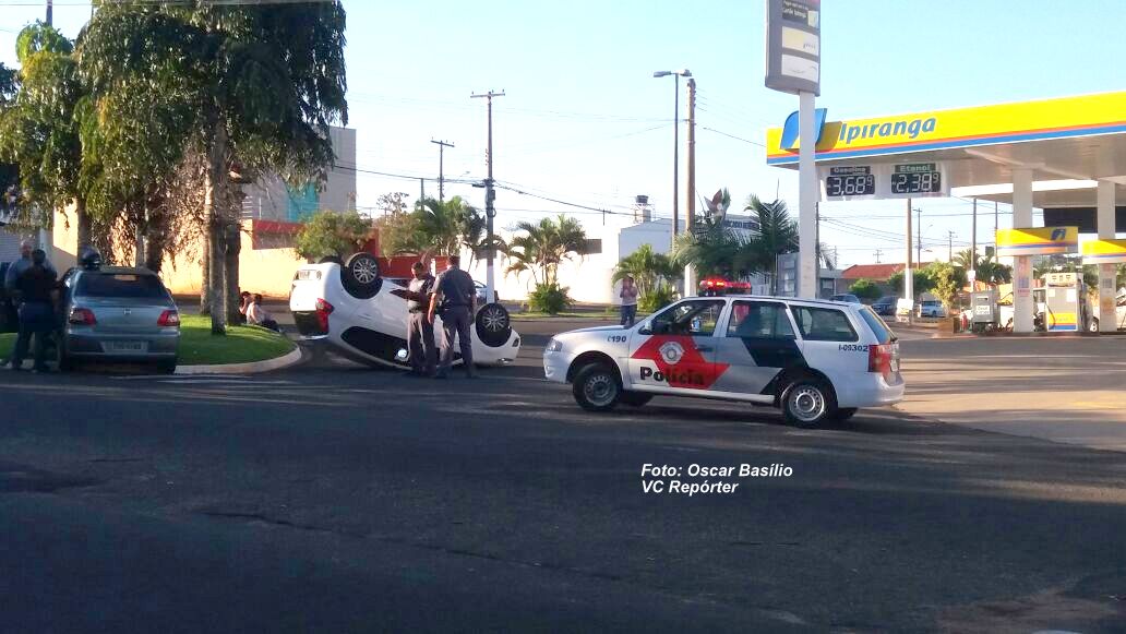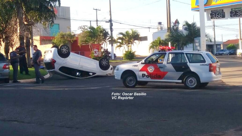 Uma colisão entre dois veículos resultou em um capotamento durante a tarde desta sexta-feira (9) na rua Sigismundo Nunes de Oliveira, na zona norte de Marília.