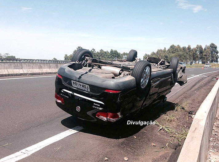 Um carro capotou pela rodovia Comandante João Ribeiro de Barros (SP-294), trecho entre Bauru e Marília, próximo ao trevo de Duartina (84 quilômetros de Marília), na manhã desta sexta (2).