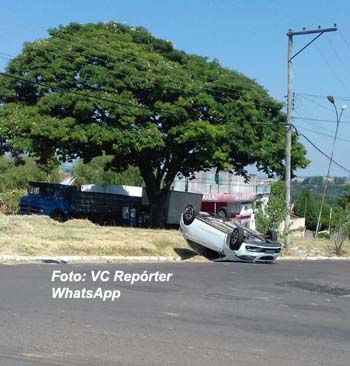 Um Chevrolet Onix Branco capotou há pouco na rua Pascoal Eugênio Brasini, no Jardim Bandeirantes, zona oeste de Marília.