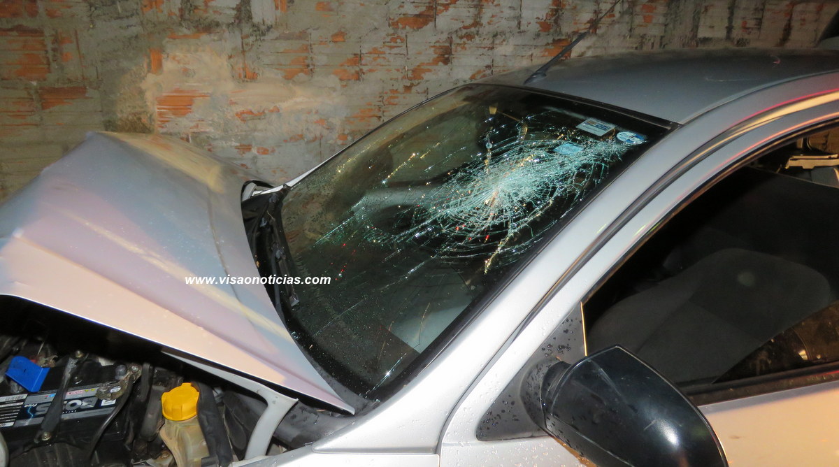 Com o impacto, a motorista e uma das crianças bateram as cabeças contra o parabrisa dianteiro.