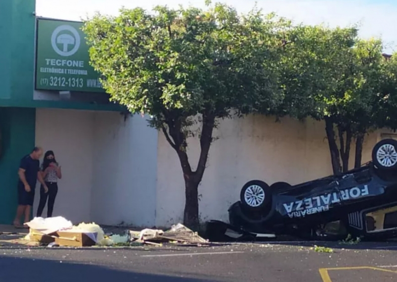 Com a força do impacto, o carro com o caixão acabou capotando e parou em uma árvore. A porta traseira abriu e o corpo caiu na rua.