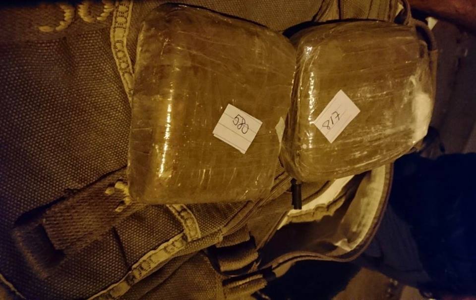 Durante a vistoria, os policiais rodoviários encontraram uma mochila embaixo no banco do passageiro. Nela foram encontrados dois pacotes envoltos com fita plástica contendo 1,4 quilo de cocaína.