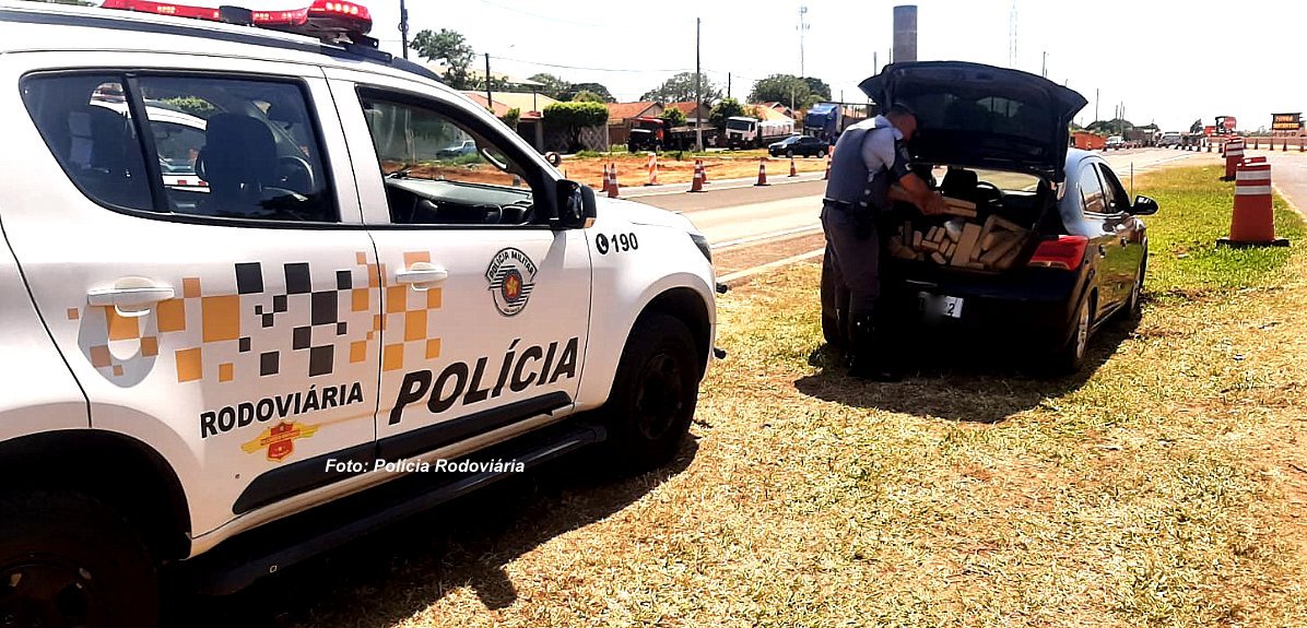 No interior do veículo foi localizada grande quantidade de tijolos de maconha (422 tabletes, totalizando 418 quilos). Além do entorpecente, o carro era produto de roubo por São Paulo.