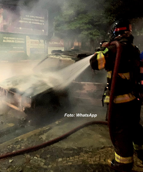 Um carro ficou completamente destruído por um incêndio no final da noite desta segunda-feira, primeiro dia do ano. As causas ainda serão investigadas, mesmo porque o dono não havia sido localizado pela equipe do Corpo de Bombeiros pelo menos durante o trabalho da equipe.