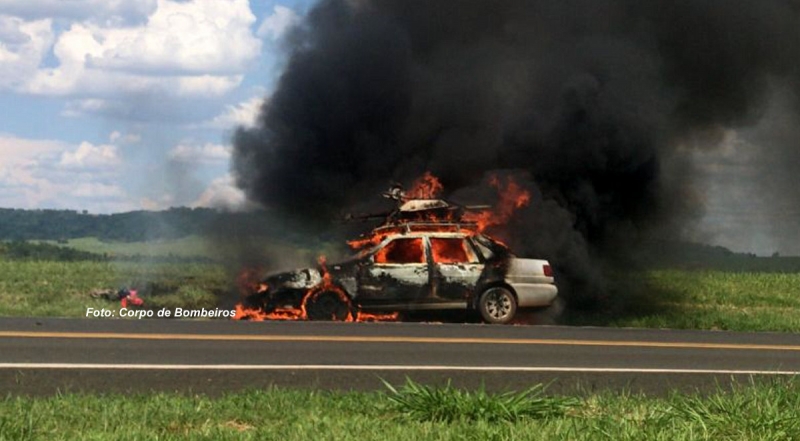 Um veículo modelo Santana ficou completamente destruído por um incêndio nesta quarta-feira, na rodovia BR-153, em Marília. O Corpo de Bombeiros foi acionado, mas devido a distância, pouco puderam fazer para evitar que as chamas atingissem todo o veículo. Apesar dos estragos, ninguém ficou ferido.