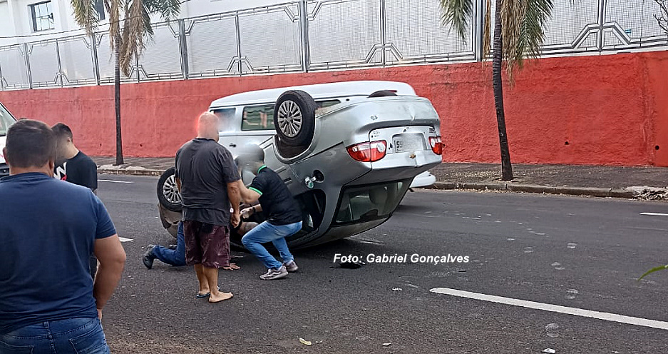 Um carro ficou de rodas para cima após um acidente no começo da manhã desta segunda-feira (24) na avenida Castro Alves, uma das principais ligações do centro à zona norte de Marília. O motorista sofreu ferimentos e foi socorrido.