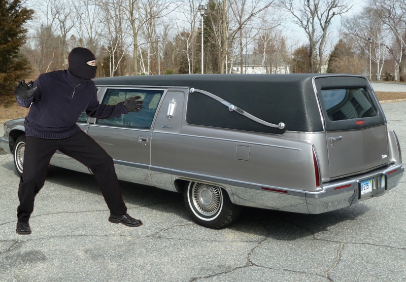Ladrão não sabia que o caixão ainda estava no veículo