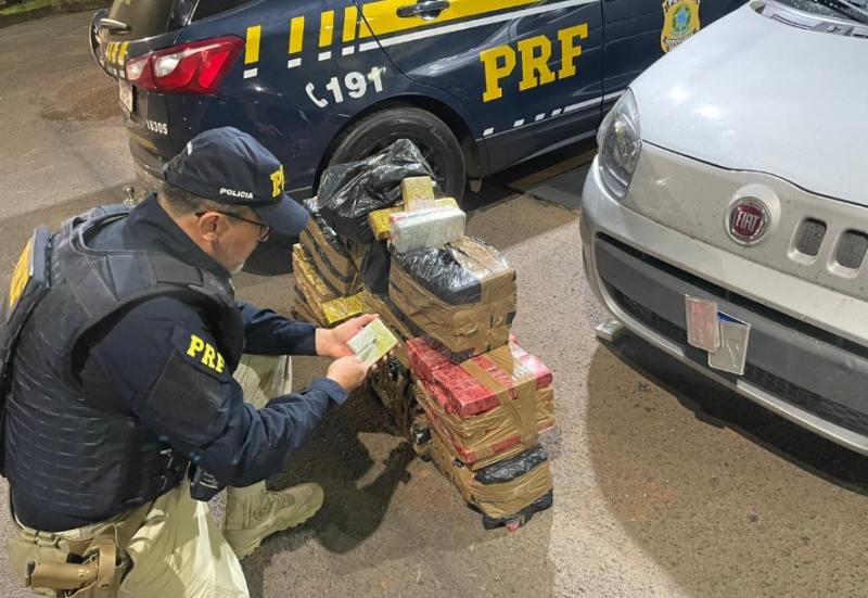 A Polícia Rodoviária Federal apreendeu ontem à noite cerca de 110 quilos de maconha. A droga estava sendo transportada em um veículo roubado e o motorista acabou preso em flagrante. Ele confessou como seria o esquema da quadrilha responsável pelo tráfico de entorpecentes.