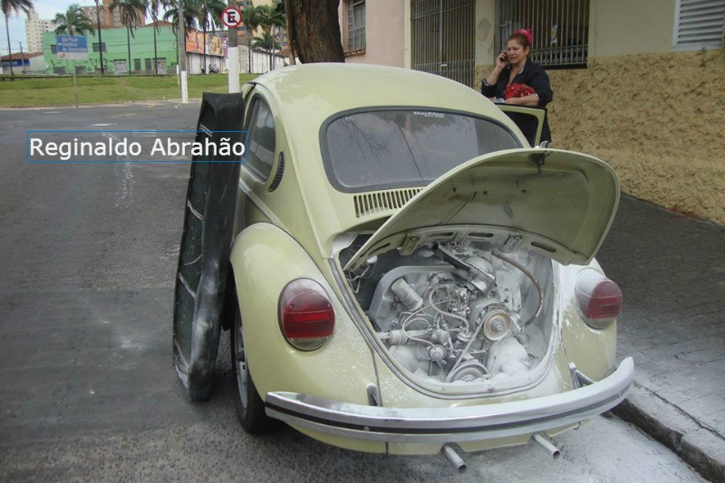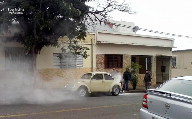 Um princípio de incêndio em um Fusca assustou pessoas que passavam pelo centro de Marília há pouco, na manhã desta sexta-feira, 15.