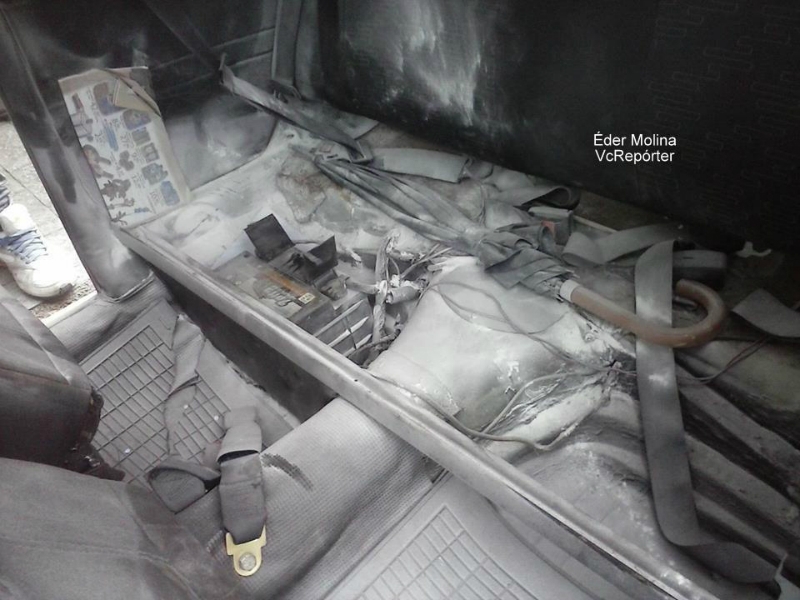 Felizmente ninguém se feriu. Parte do veículo ficou destruída com a ação do fogo.