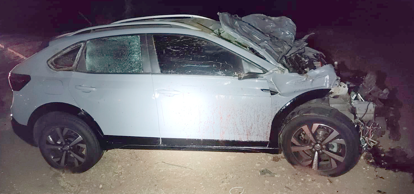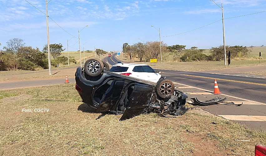 O impacto foi tão violento que o Kwid acabou capotando. Os dois ocupantes foram socorridos pelo Resgate da concessionária e levados à Santa Casa de Lins.