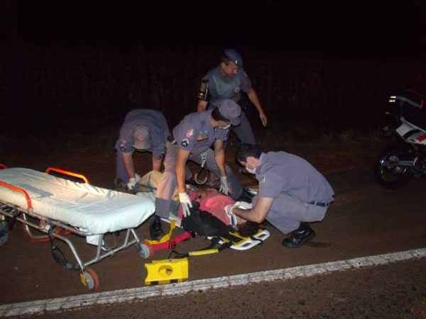 Na queda sofreu fratura exposta em uma das pernas. A equipe de Policiamento e do Resgate do Corpo de Bombeiros prestaram socorro e encaminharam o ferido para o pronto socorro da Santa Casa de Cândido Mota.