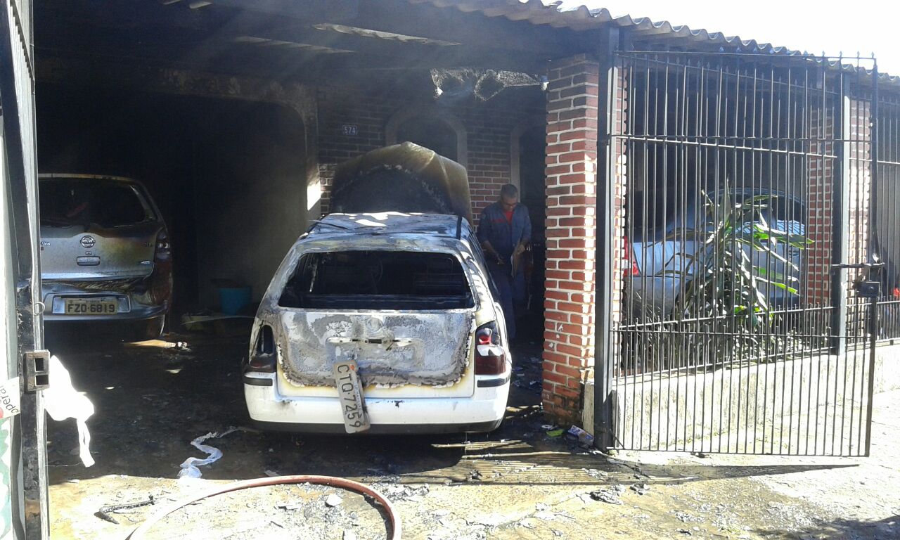 Três veículos que estavam estacionados na garagem de uma residência, na rua Capitão Alberto Mendes Junior, no Jardim Vista Alegre, zona Sul de Marília, ficaram
